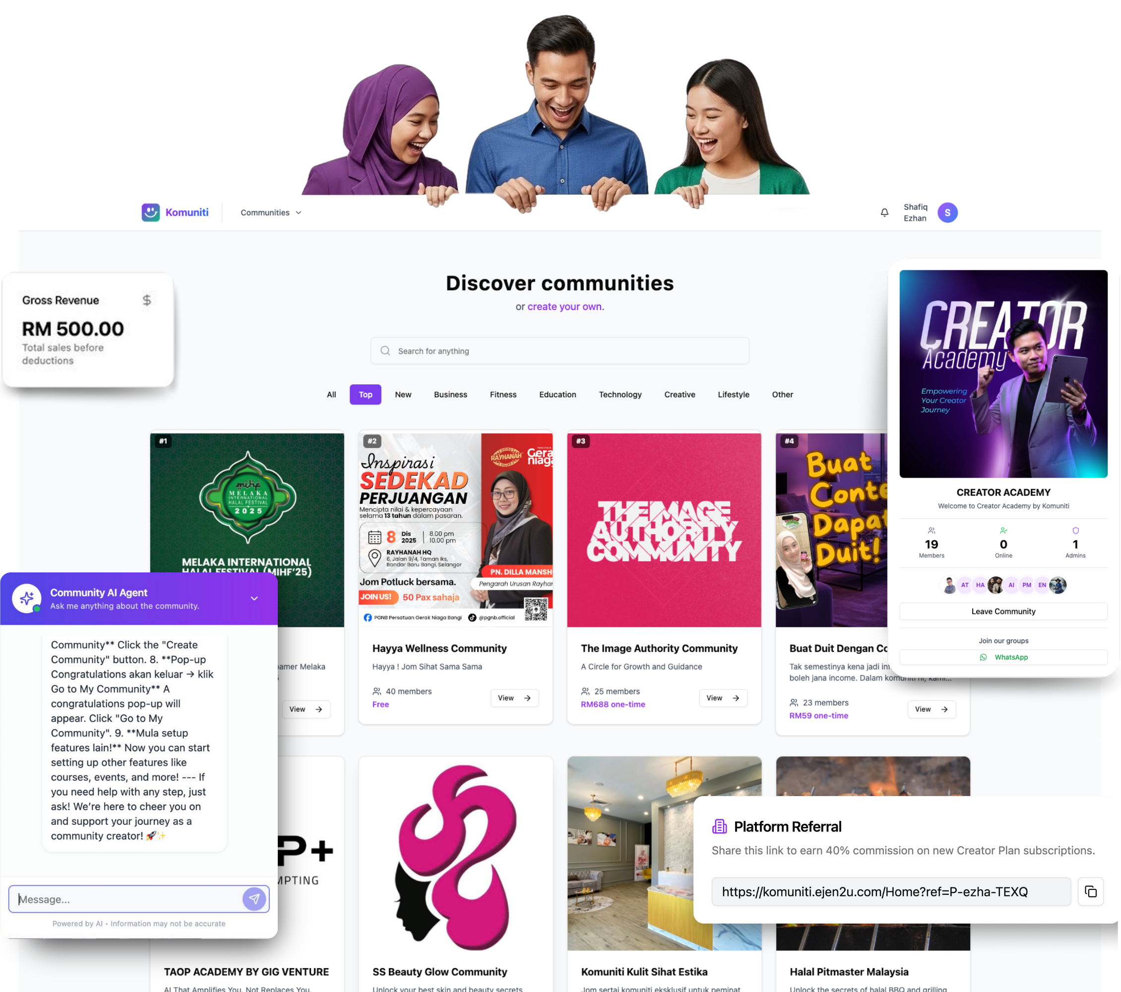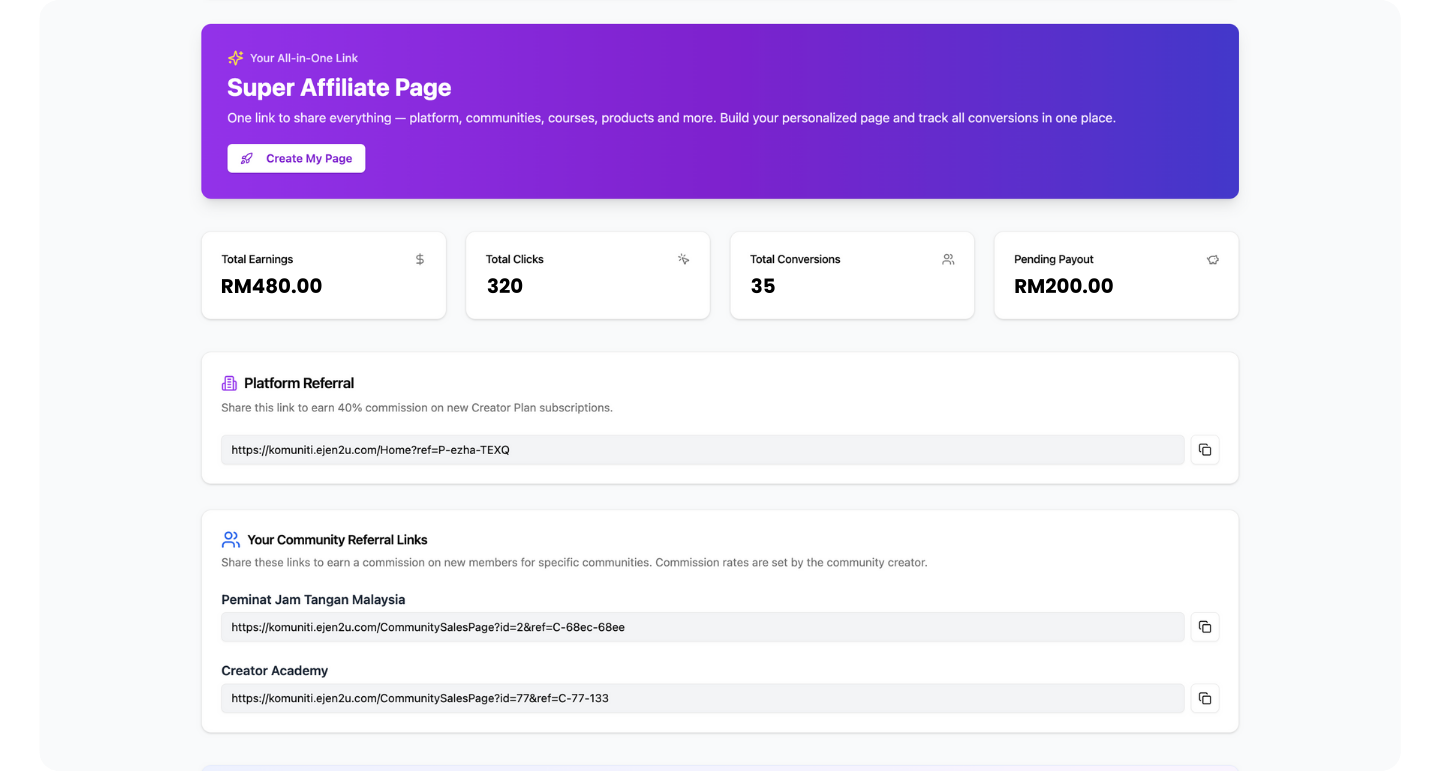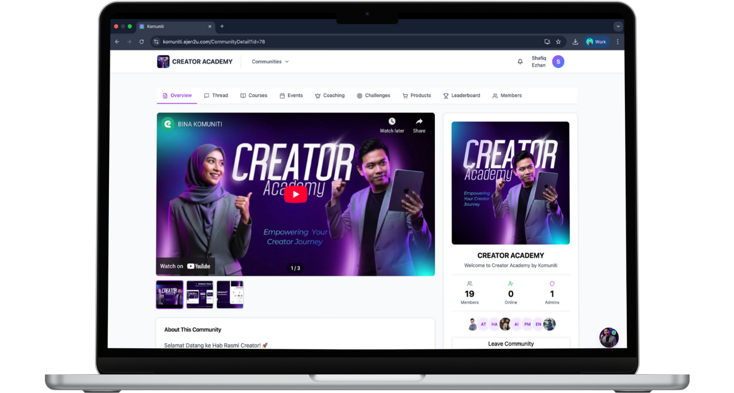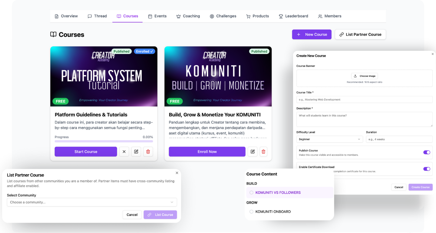 Komuniti is Malaysia’s all-in-one community platform that helps creators, educators, businesses, and organizations build communities, run courses, host events, and monetize — all from one place.